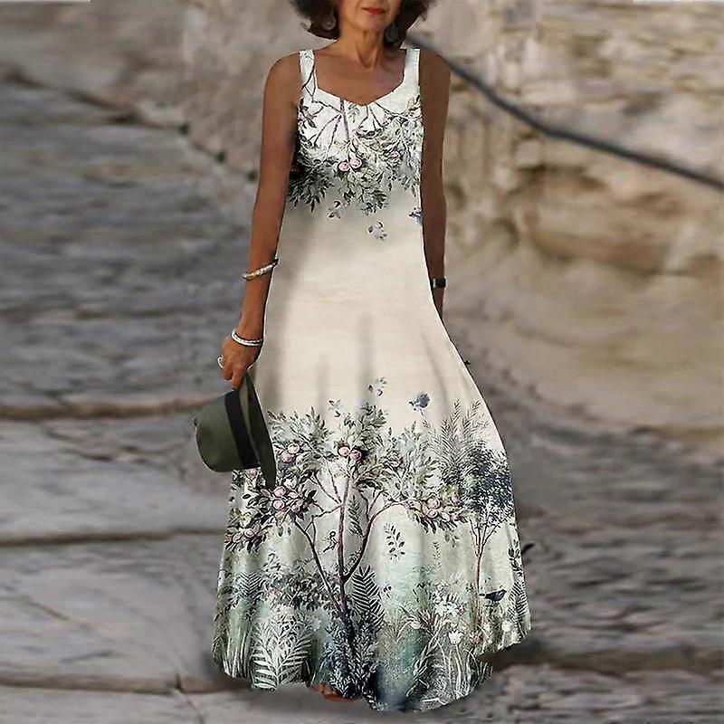 Women's Camisole Dress Maxi Long Dress with Buds Waiting to Bloom, Printed Dress, Spring/summer V-neck Casual Vacation