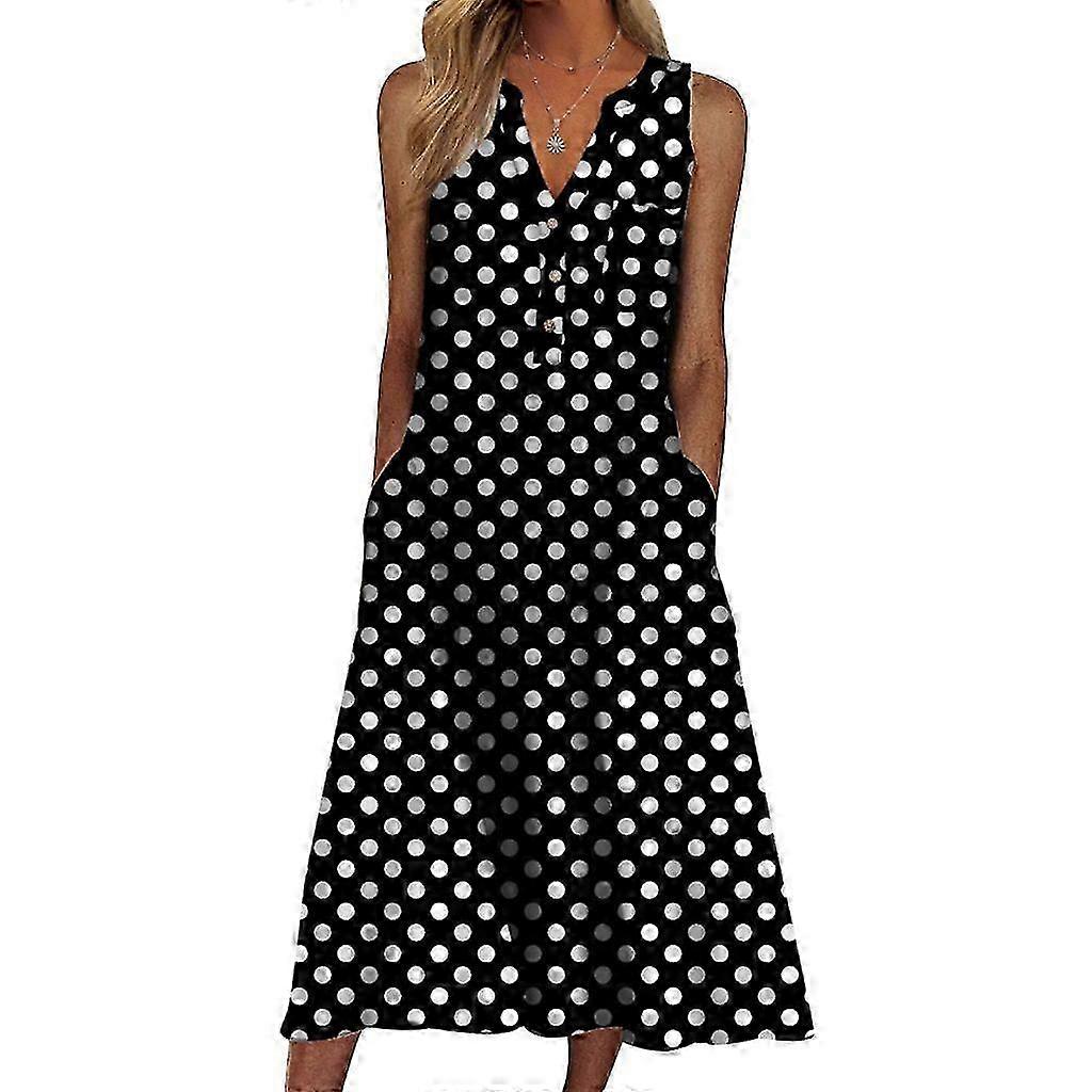 Women's Summer Sleeveless Striped Midi Swing Dress - Button V-Neck High Waist Casual A-Line Flare Hem for Effortless Style