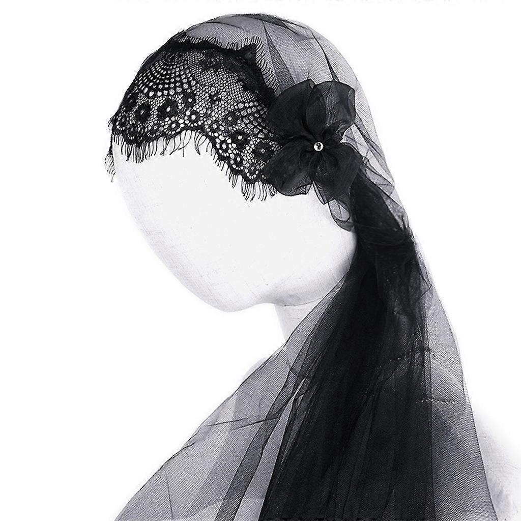 Lace Mantilla Veil Soft and Comfortable Spanish Style Exquisite Tulle Veil 1 Tier Cut Edge for Head Covering for Women G