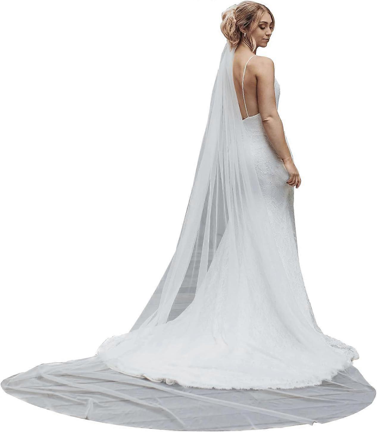 Long Cathedral Simple Drop Tulle Bridal Wedding Veil with Comb Ivory Cathedral