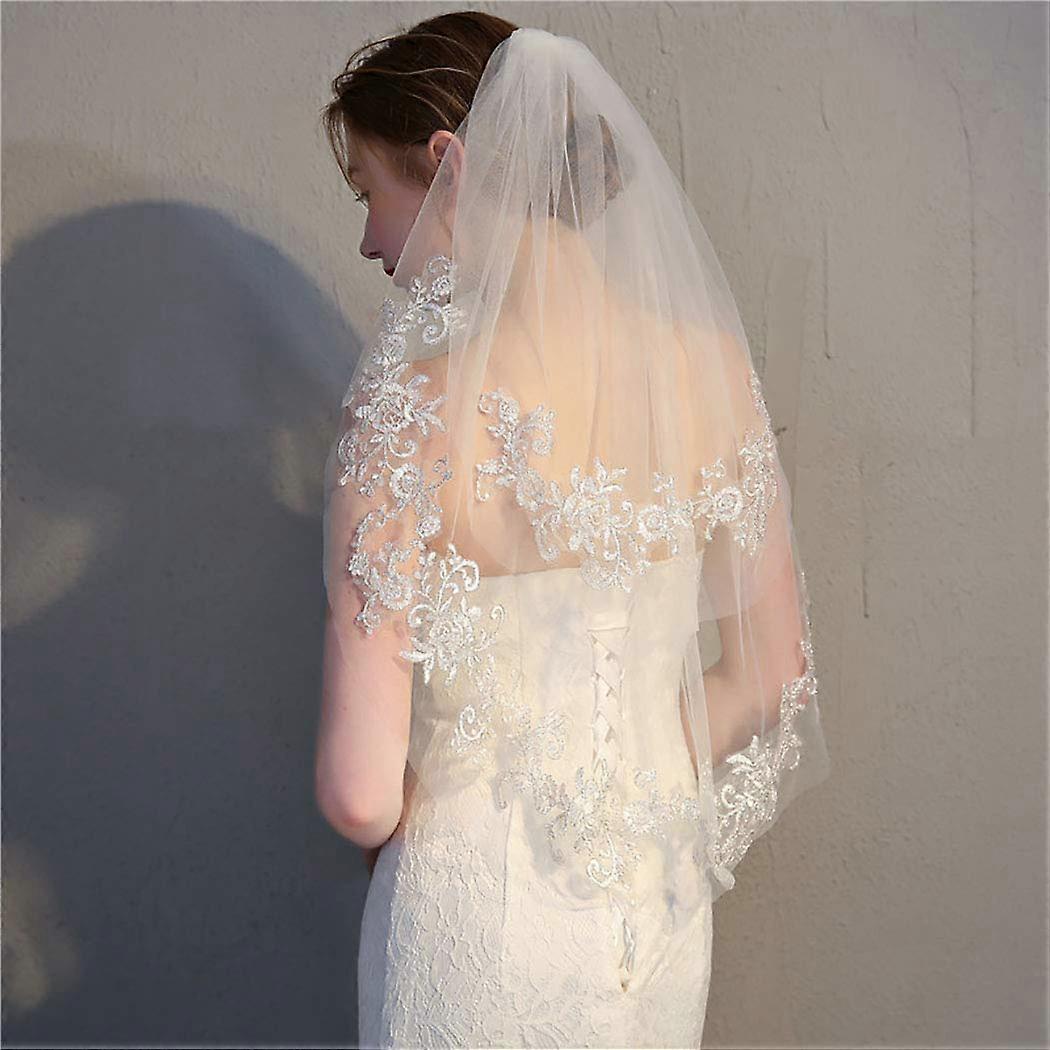 Wedding Lace Veil Short Sparkle Waist Veils 2 Tier Soft Tulle Bridal Veils with Comb (White) - -