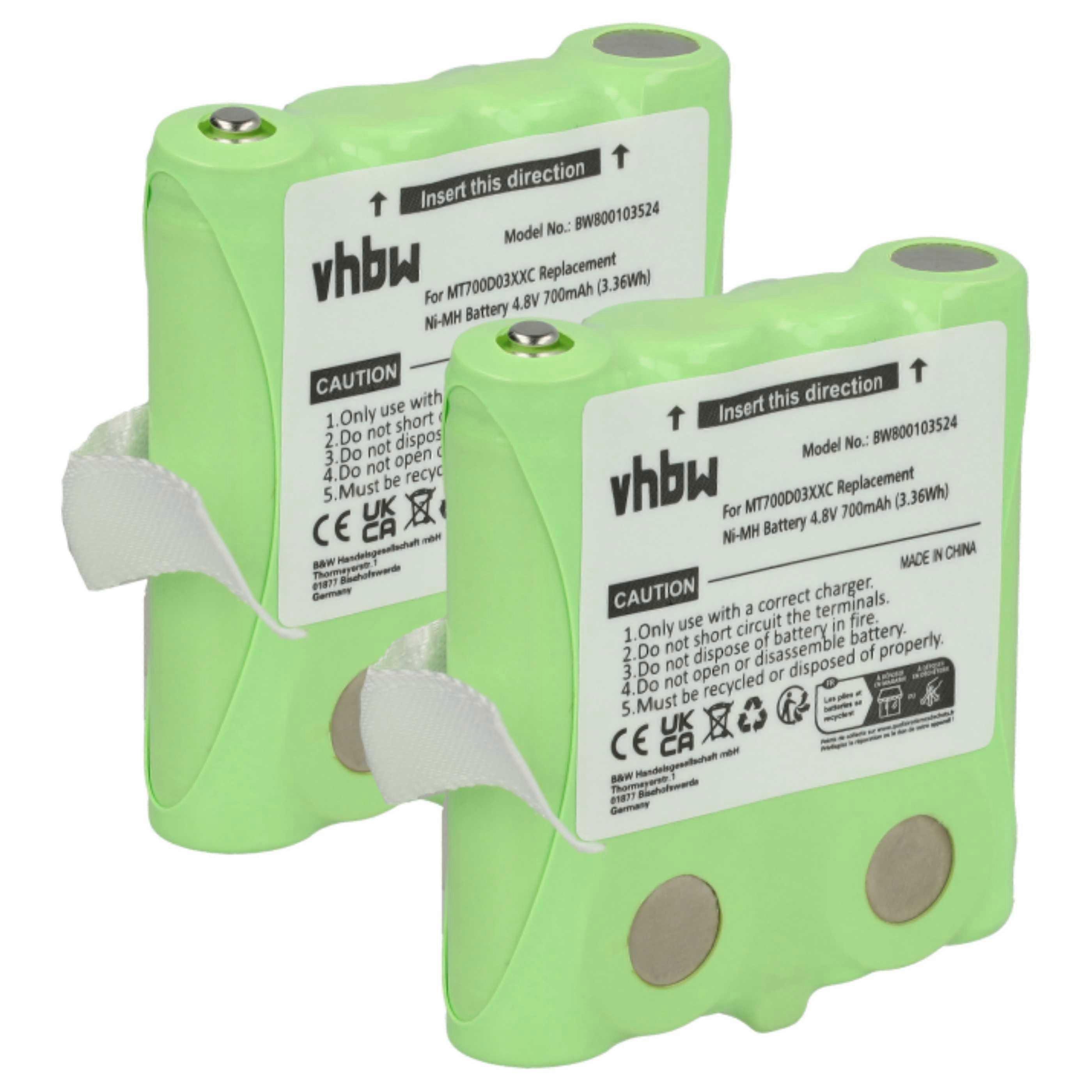 vhbw 2x Akku kompatibel mit Simvalley WT-100, PX-1761, PX-1755, PX-1754-919, PX-175-675 Funkgerät, Walkie Talkie (700 mAh, 4,8 V, NiMH)