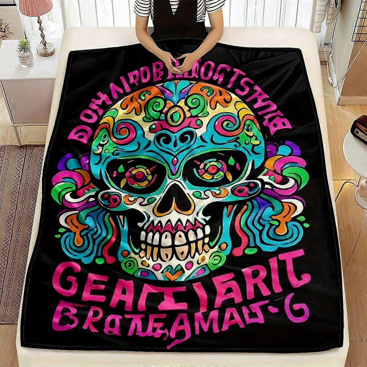 Vibrant Skull Print Flannel Blanket \u2013 Colorful Domineering Host Design, Soft & Cozy Multi-Purpose Throw for Bed, So-poiuy414