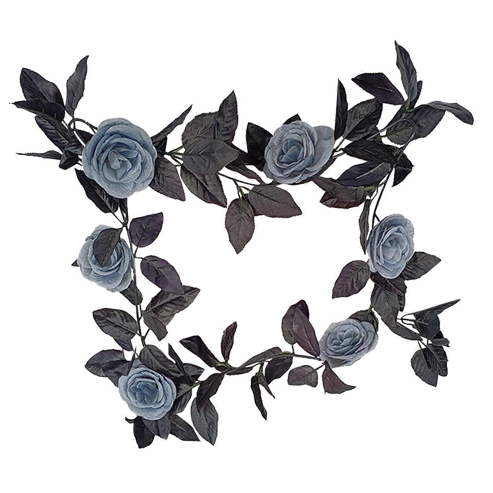 Artificial Black Rose Vine,Artificial Eucalyptus Garland with Black Roses, Wedding Fake Rose