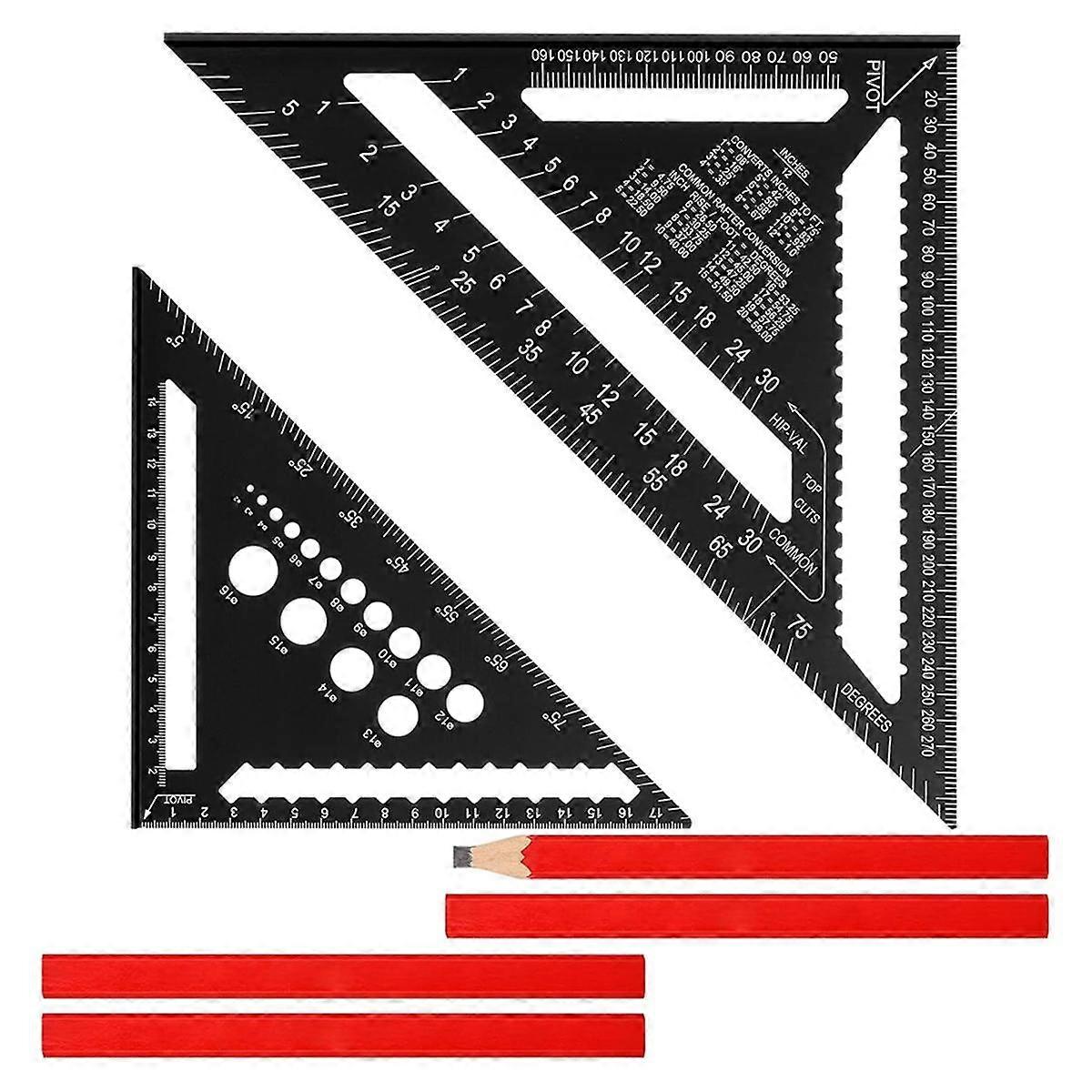 7 Inch & 12 Inch Rafter Square with 4 Carpentry Pencils Aluminum Triangle Ruler Measuring Tool for Woodworking Carpentry