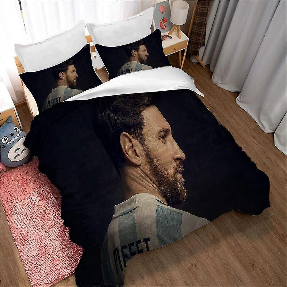 w134 Ste-X Duvet Cover Set 3 Pieces Reversible Lionel Messi Bedding Quilt with Zipper Ties Ultra Soft Microfiber m134