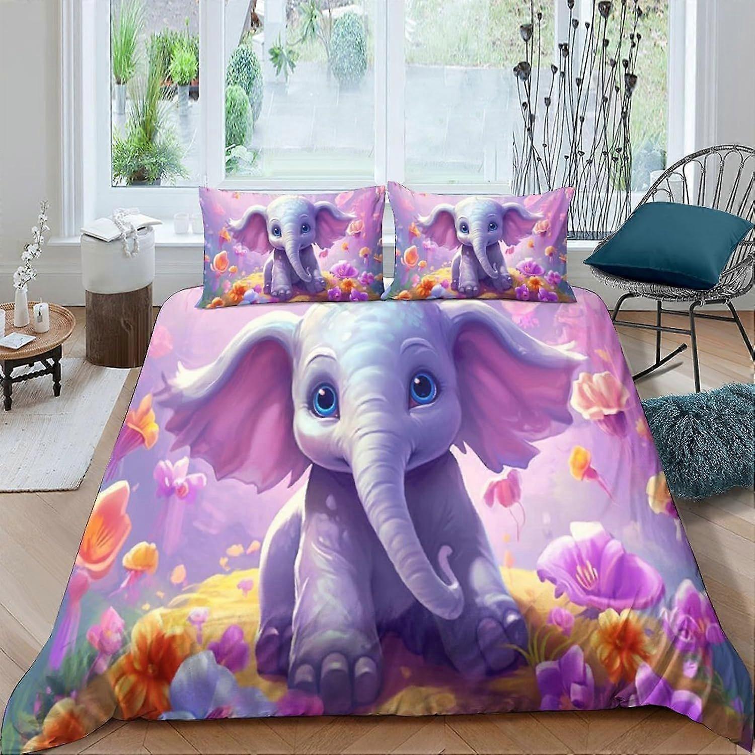 w20 Elephant Duvet Cover Multi Colour Set 3 Piece Set Animal Luxury Soft Duvet Cover Quilt Bedding Set With Pillowcases Double u20