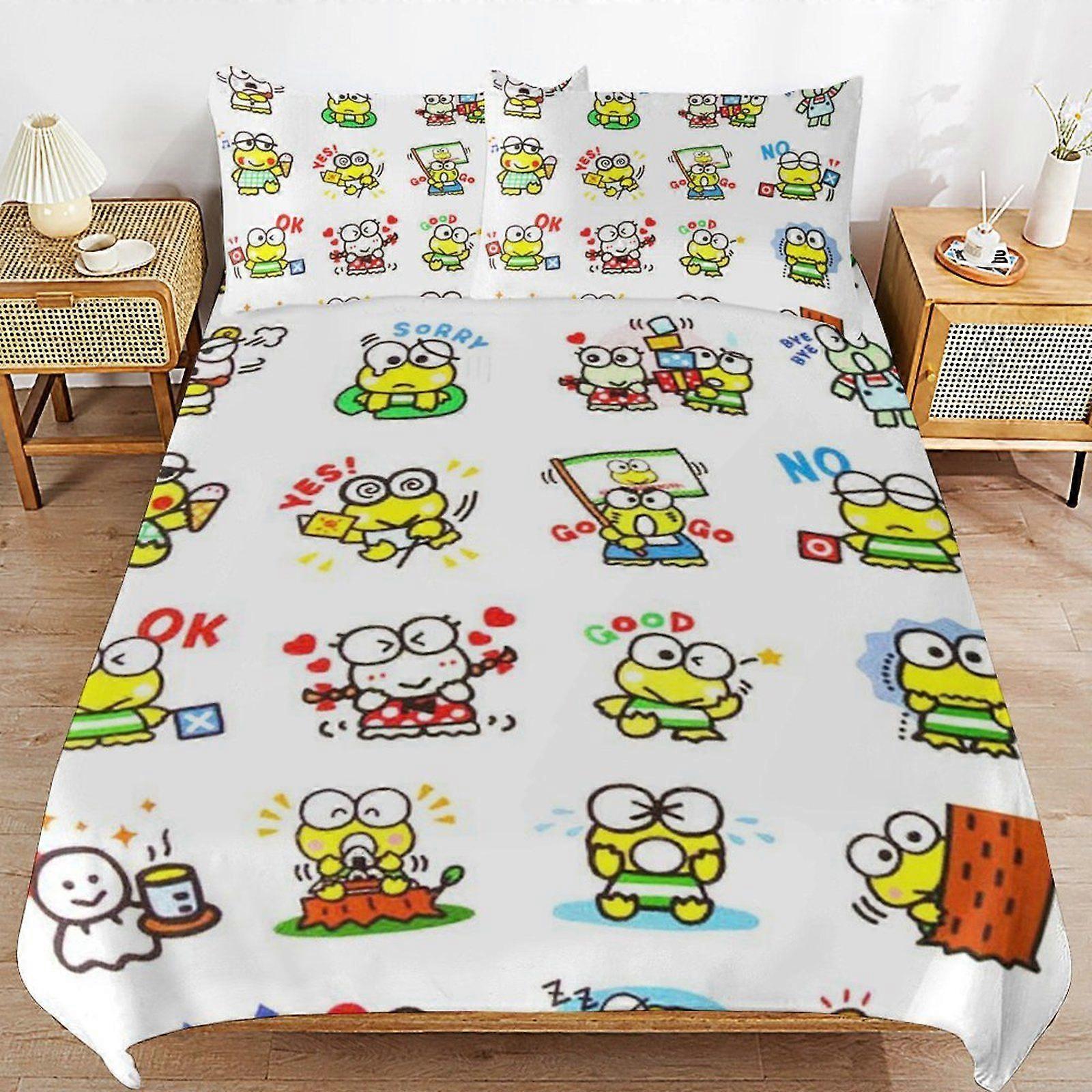 w333 Kerokero Keroppi Consistent Soft Layer Machine Wash Safe Threaded Finish Duvet Cover Sets Comfortable Bedding m333