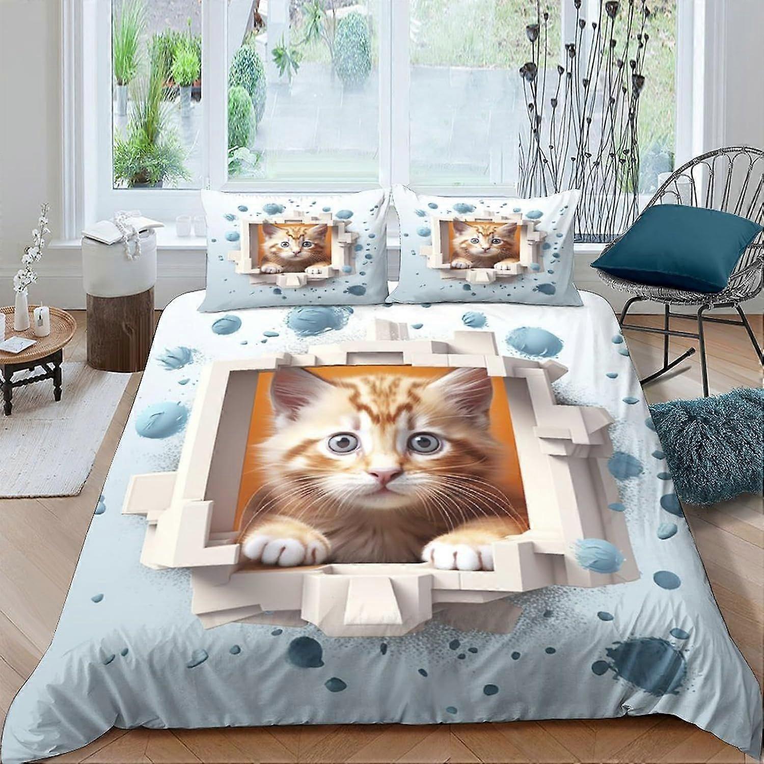 w361 Cat Quilt Covers 3 Piece Set Hypoallergenic Soft Microfiber Duvet Cover Set One-sided Soft Easy Care Bedding Set with Matching Pillowcases Double
