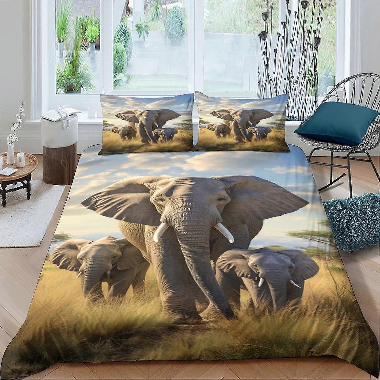 w432 Animal Elephant Bedding Set 3D Duvet Cover for Kids Boys Girls Comforter Cover Soft Bedspread 3 Piece Set with Zipper Closure Soft Microfiber Dou
