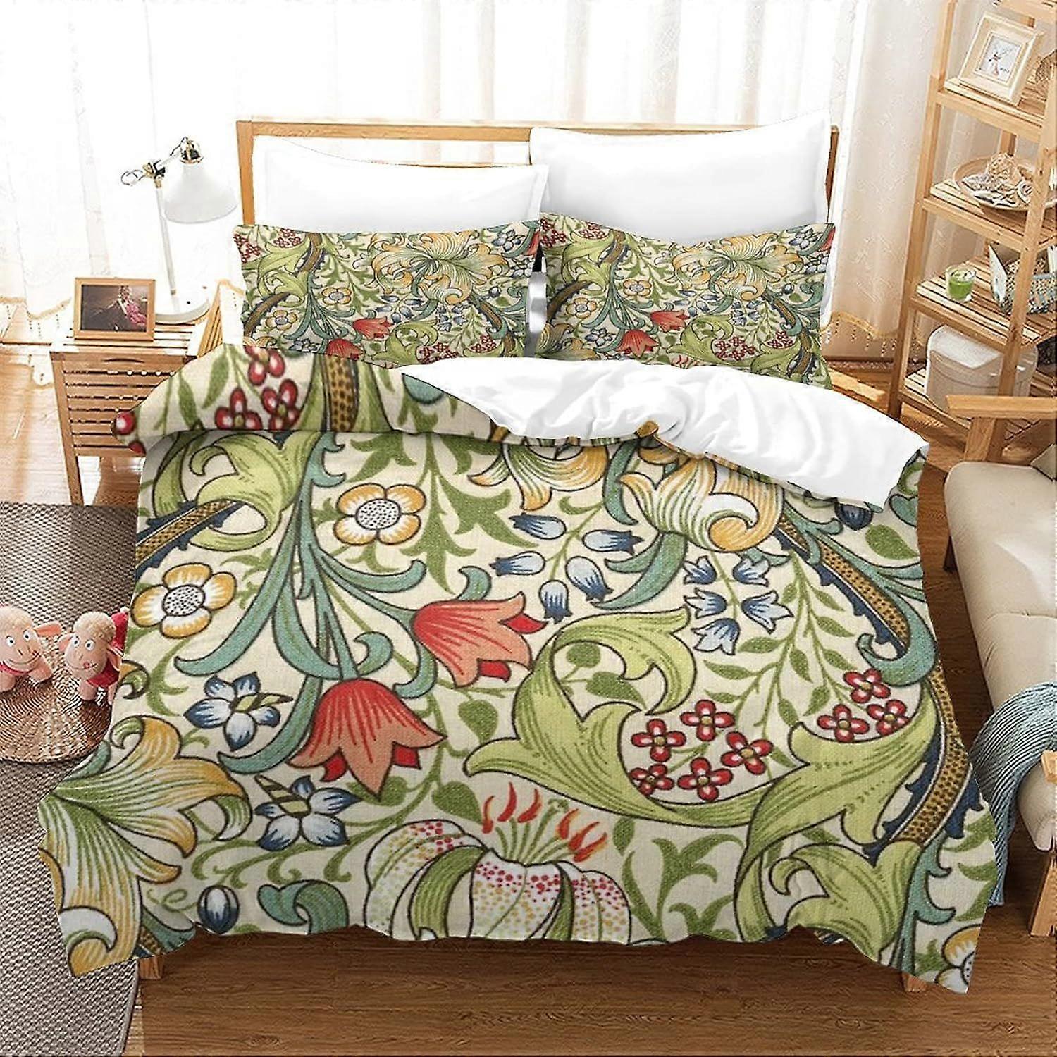 W499 William Morris 3D Printed Duvet Cover Set with Zipper Soft Easy Care Duvet Cover Quilt Bedding Flower Pattern Floral Watercolour Set With Pillowc