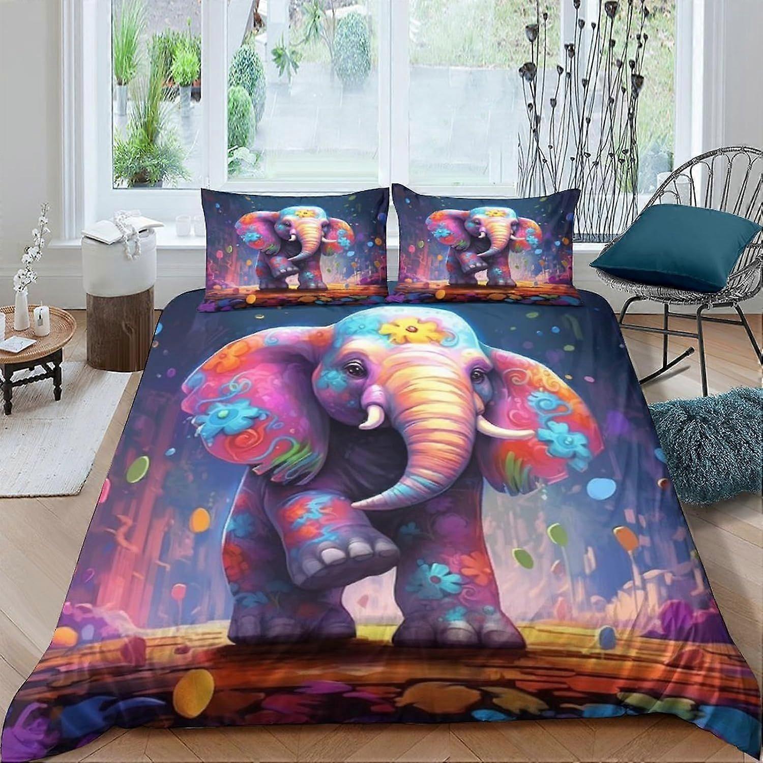 w501 Elephant Duvet Cover Set 3 Piece Set Anti Allergic Bedding Sets Soft Microfiber Festival Bedding Quilt Cover with Pillow Cases Animal Bedding Set