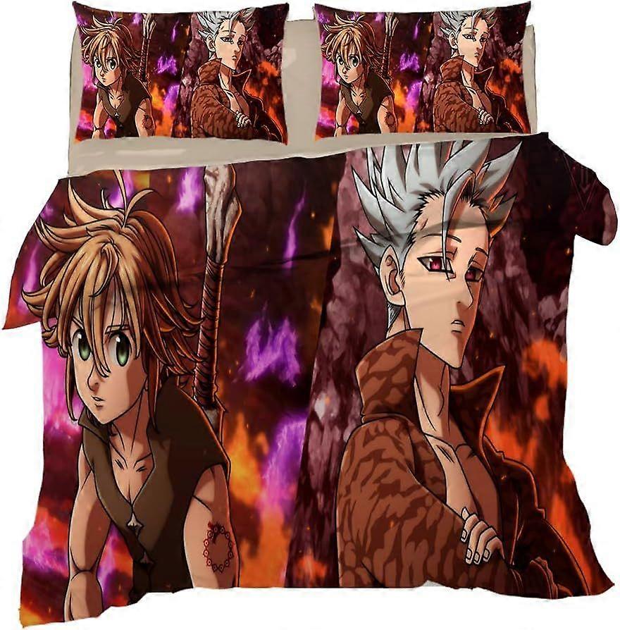 W581 The Seven Deadly Sins Bed Linen Set - Duvet Cover and Pillowcase Microfibre 3D Digital Print Three-Piece Bed Linen (Duvet Cover + Pillowcases) E5