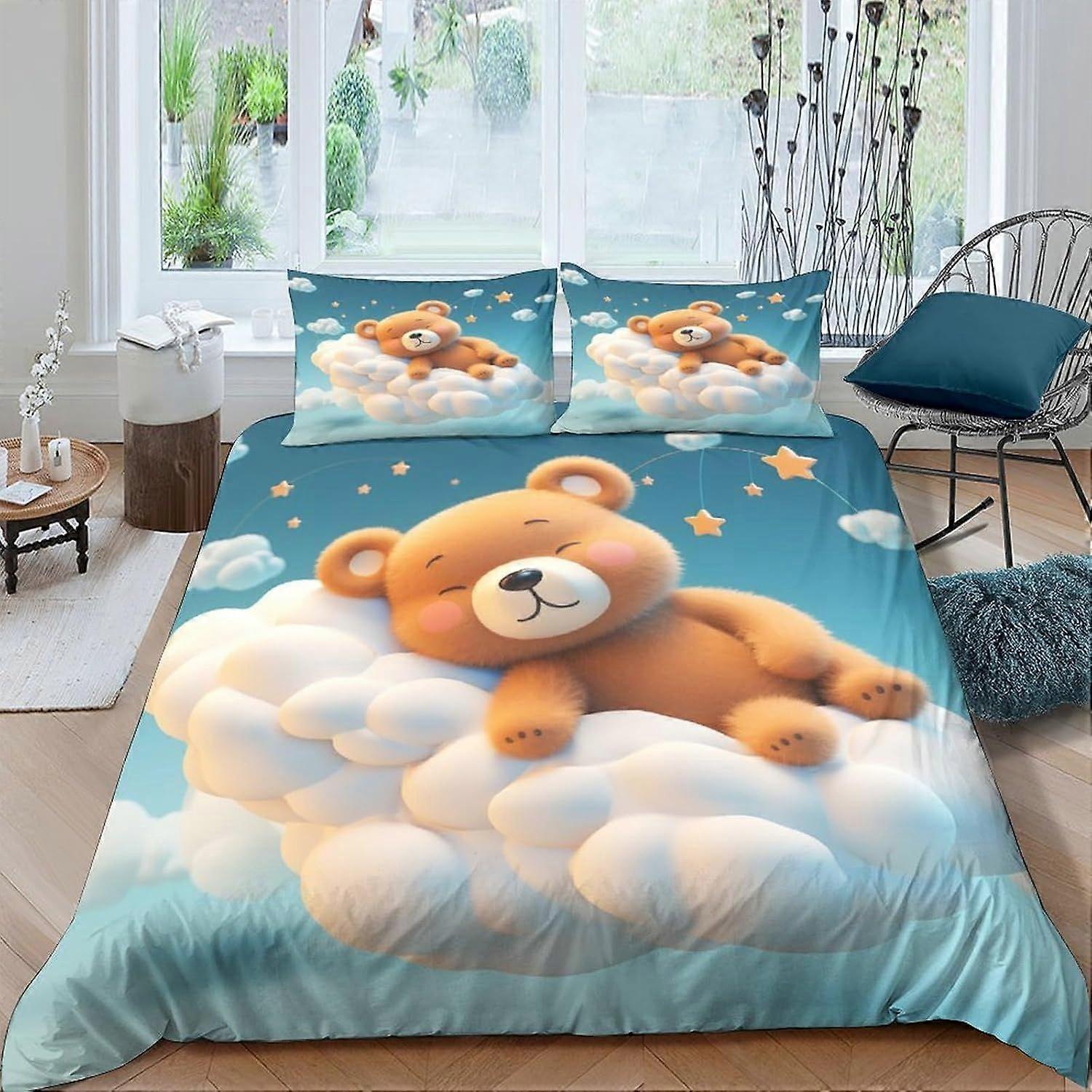 w596 Sleeping Bear Bedding 3 Piece Set Duvet Cover 3D Printed Quilt Duvet Cover with Zipper Closure, Soft Microfiber Bedding Double u596