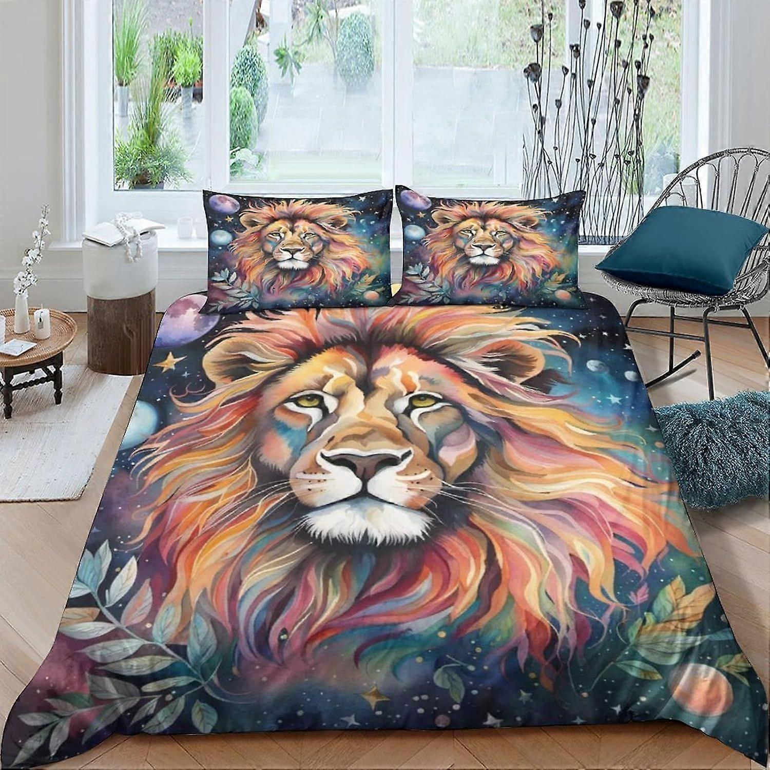 w625 Lion Comforter Cover 3D Duvet Cover, Bedding Sets, Easy Care Printed Quilt Covers With Pillow Case Soft Microfiber 3 Pieces for Kids Double u625