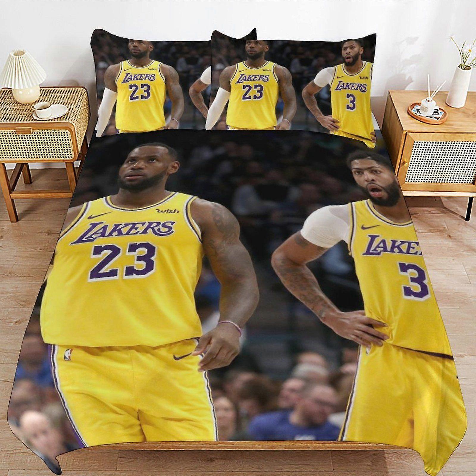 w64 Lebron James In Los Angeles Lakers Uniform Breathable Layer Comfortable Feel Soft Durable Fabric Bedding Duvet Cover Sets with Secure Closure n64