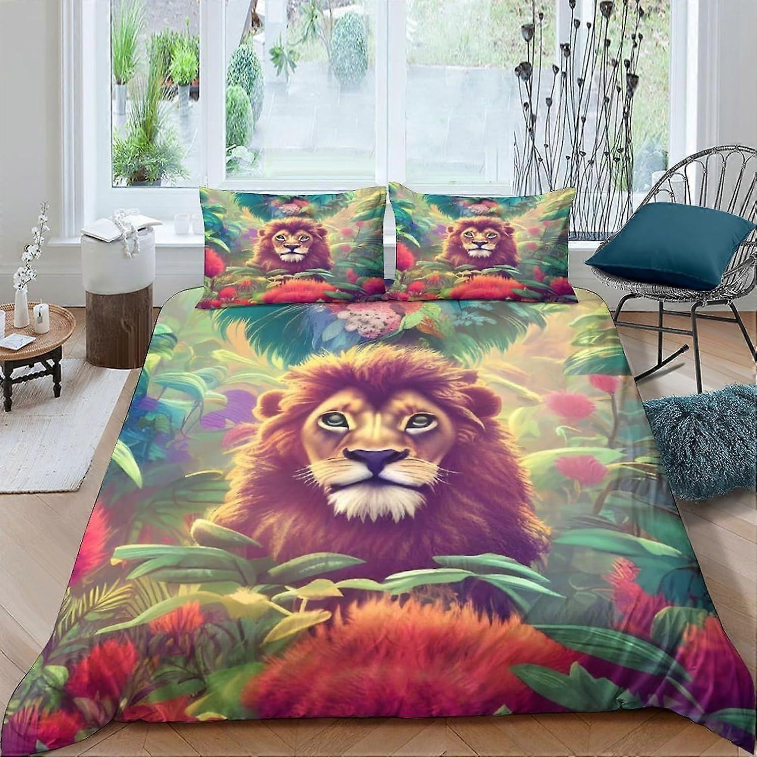 w642 Lion Bedding Duvet Cover Set 3D Comforter Cover 3 Pieces Quilt Cover Soft Microfiber Duvet Set with Zipper Pillowcase,for Teens And Adults Double