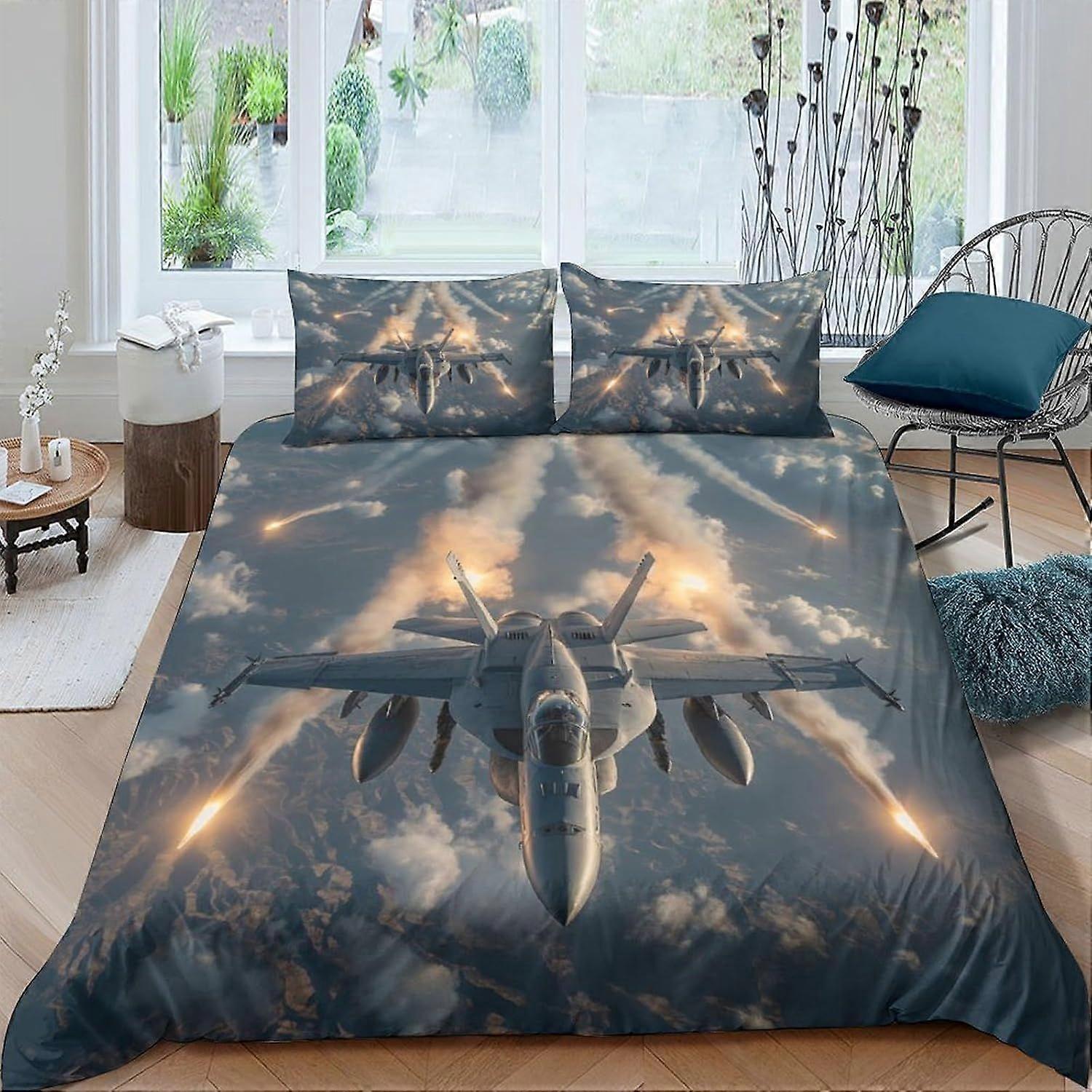 w92 Jet Fighter Duvet Cover with Pillowcases 3D Printed Bedding Set with Zipper Closure Unique Design Anti-allergic Quilt Cover Double u92