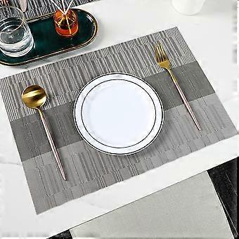 Washable Square Place Mats Set of 6, PVC Non-Slip Table Mats, Light Grey Woven Colour Gradient Stripes, 30 x 45 cm