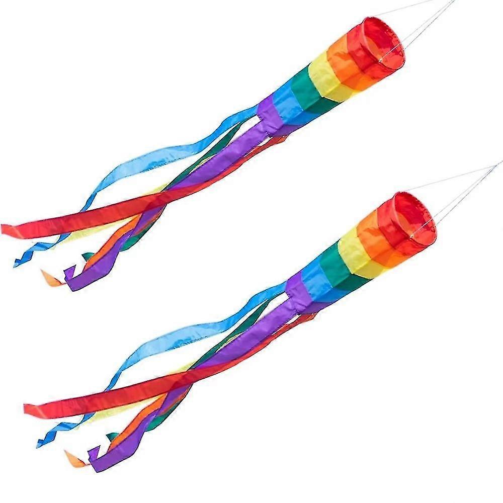 Windsock - Rainbow - Uv And Resistant - 13cm, Length: 88cm - Incl. Ball Bearing Swivel, (2 Pcs)