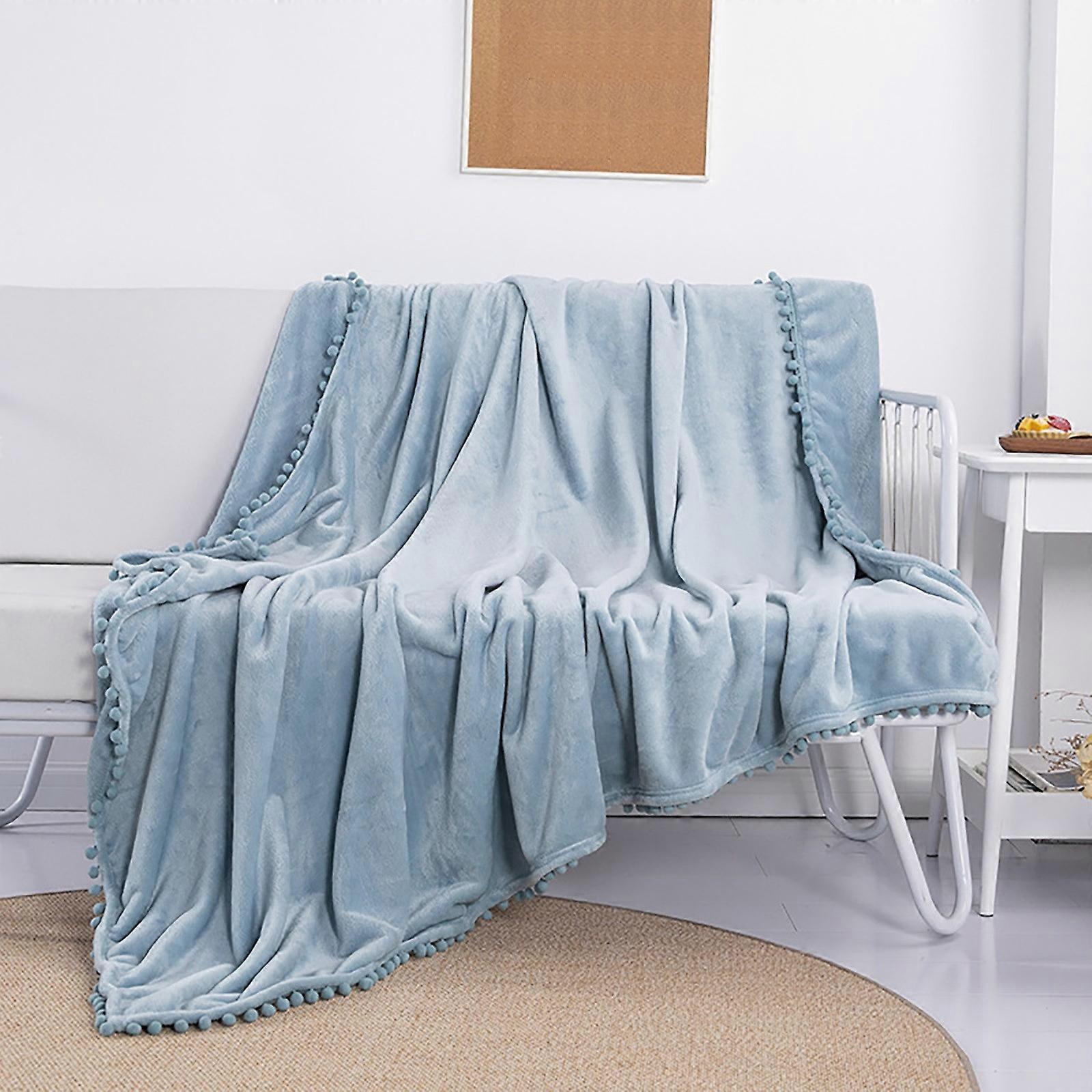 WinysinBlanket Soft Throw Blanket With Pompom Fringe Lightweight Bed Blanket Fit Couch Sofa(60