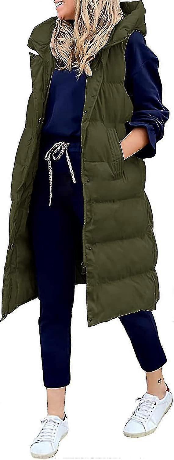 Womens Long Puffer Vest Full-zip Hooded Sleeveless Down Jacket Coats With Pockets