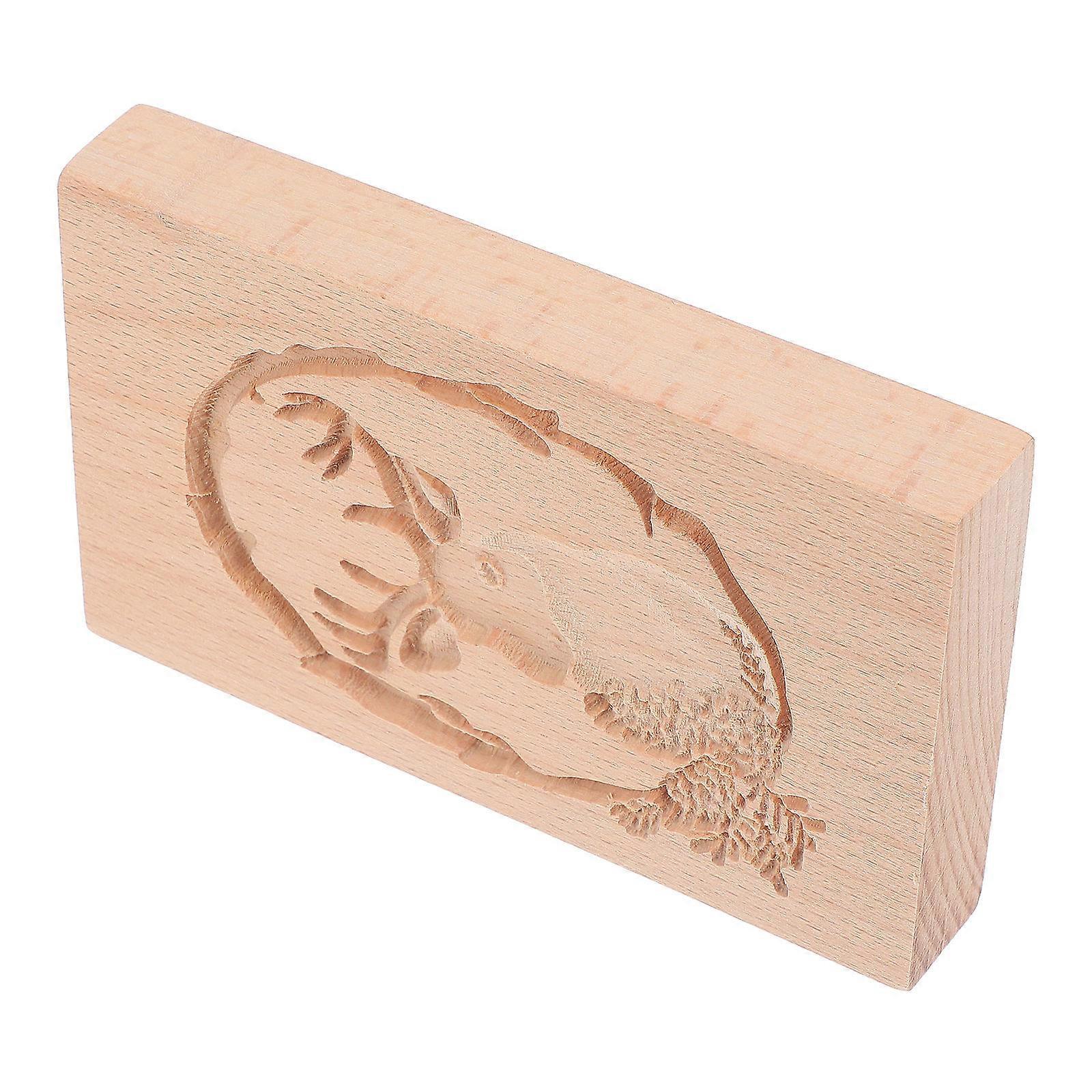 Wooden Cookie Mold Carved Reindeer Shape for Baking Use