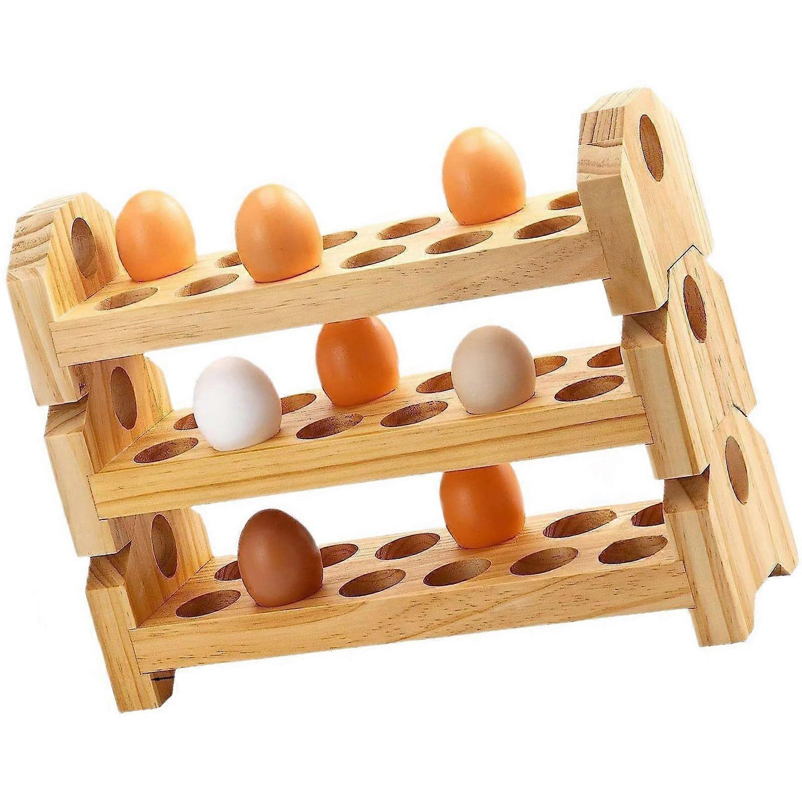 Wooden Eggs Holder With 3 Deck Design For Large Capacity Kitchen Countertop Display And Organization Stand Multicolor