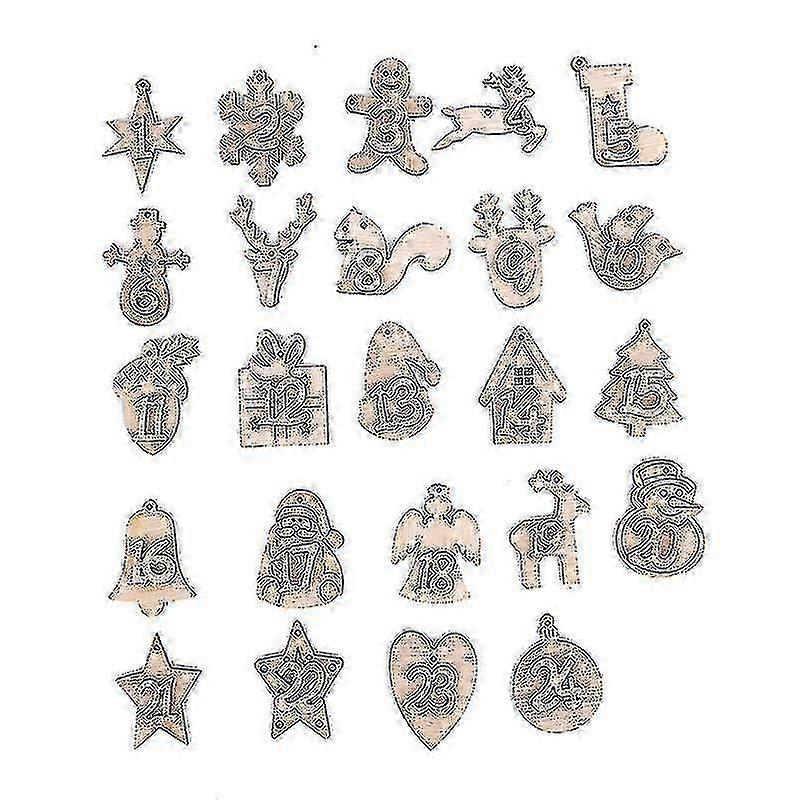 Wooden Number Pendant for Christmas Advent Calendar 1 to 24 Set