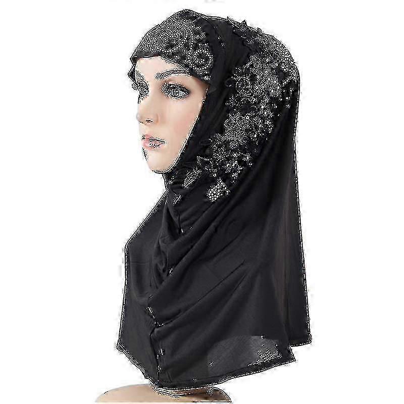 Womens Ice Silk Mu Hijab Lace Applique Head Wrap Shawl With Rhinestones