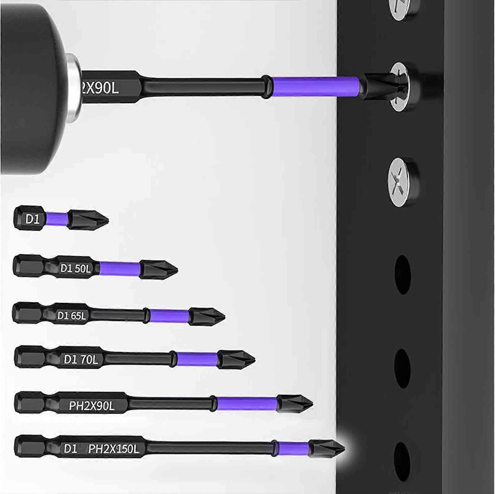 Our magnetic anti-slip drill bits feature an impact-resistant construction and a non-slip fine-tooth design that grips securely and ensures more sustainable productivity. These handy bits are partially absorbent and more durable and fit seamlessly into most hand screwdrivers. Specifications: Name: Magnetic Screwdriver Bit Set Material: D1. Features: non-slip/wear-resistant/high hardness/not rusty Size: 25mm, 50mm, 65mm, 70mm, 90mm, 150mm Features: 1.6 different sizes to meet your different needs. 2. Strong magnetism and high hardness ensure safety. 3. Suitable for different scenarios, not prone to rust and with long service life. Packing list: 6 x magnetic screwdriver bit set. Notes: 1. Due to the different monitor and light effect, the actual colour of the item may be slightly different from the colour shown in the pictures. 2. Please forgive a slight measurement deviation due to manual measurement. Increased Accuracy: This screwdriver bit set adopts high-strength antiseismic design that can withstand strong impact and high hardness. The exquisite slim waist design allows easy access to tight spaces and prevents slipping. These screwdriver bits have been specially designed for high load applications and are compatible with most drills and screwdrivers. Non-slip design: thanks to its high magnetic effect, our magnetic screwdriver bit set holds the screws firmly in place and prevents slipping. The anti-slip handle has a fine tooth design that facilitates handling and precise fixing of the screws. No more trouble keeping the screws in place - get the job done with ease. Improved durability: by using high-quality materials, our magnetic screwdriver bit set is designed for durability. This improved version has outstanding hardness grades 62hrc and guarantees unparalleled strength and high-precision performance. High torque performance: this magnetic screwdriver bit set uses a mechanical principle to produce strong torque, minimize collision response and maximize efficiency. Its strong magnetic force ensures partial absorption on contact with the screw head, ideal for high torque impact drivers. ️ INCREASED PRODUCTIVITY Equip yourself with our magnetic screwdriver bit set to achieve faster and more accurate results. By being compatible with most electric screwdrivers, it increases your productivity for a more efficient workflow and maximizes professional efficiency in industrial applications.