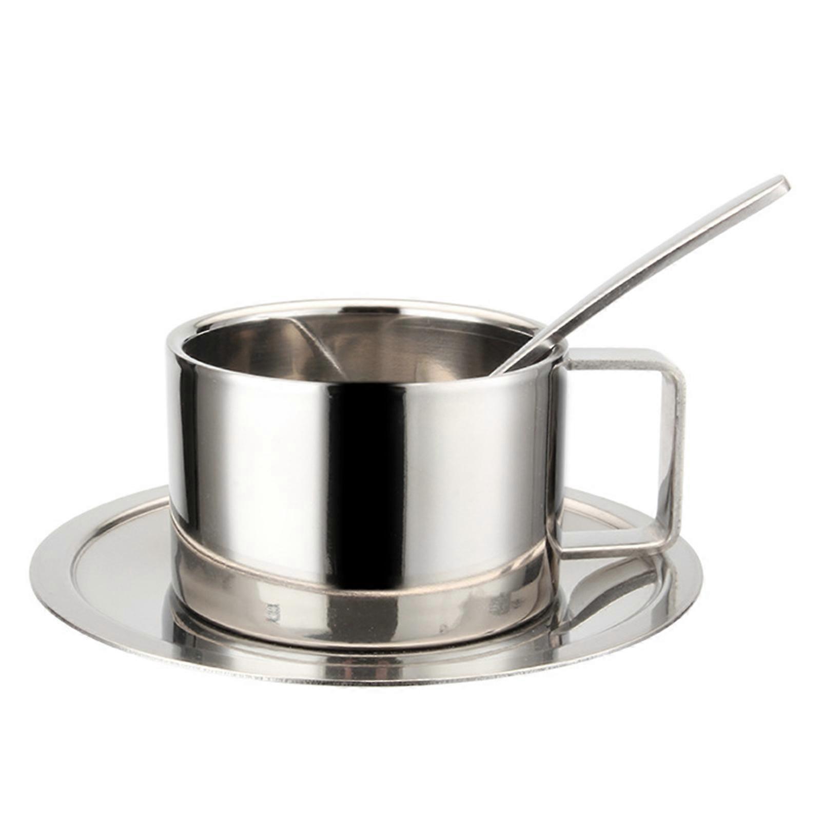 Stainless Steel Double-layer Coffee Cup European-style Coffee Cup with Saucer and Spoon Three-piece Set for Hot Milk Tea