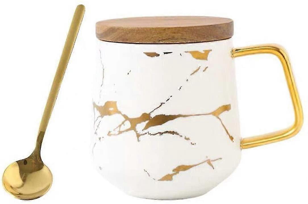 Marble Frosted Japanese Ceramic Tea Cup Afternoon Tea Coffee Cup Marble Pattern Couple Cup with Wooden Board and Spoon
