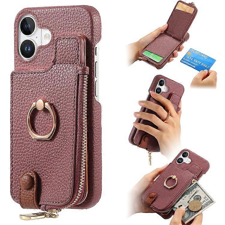 Y3 Compatible For iPhone 16 Case Card Holder Kickstand Leather+TPU Phone Cover with Zipper Pocket