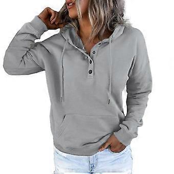 Yousheng Women Fall Winter Hoodie Long Sleeve Loose Pullover Big Pocket Button Decor Drawstring Casual Soft Warm Hooded Elastic Cuff Lady Hoodie Top