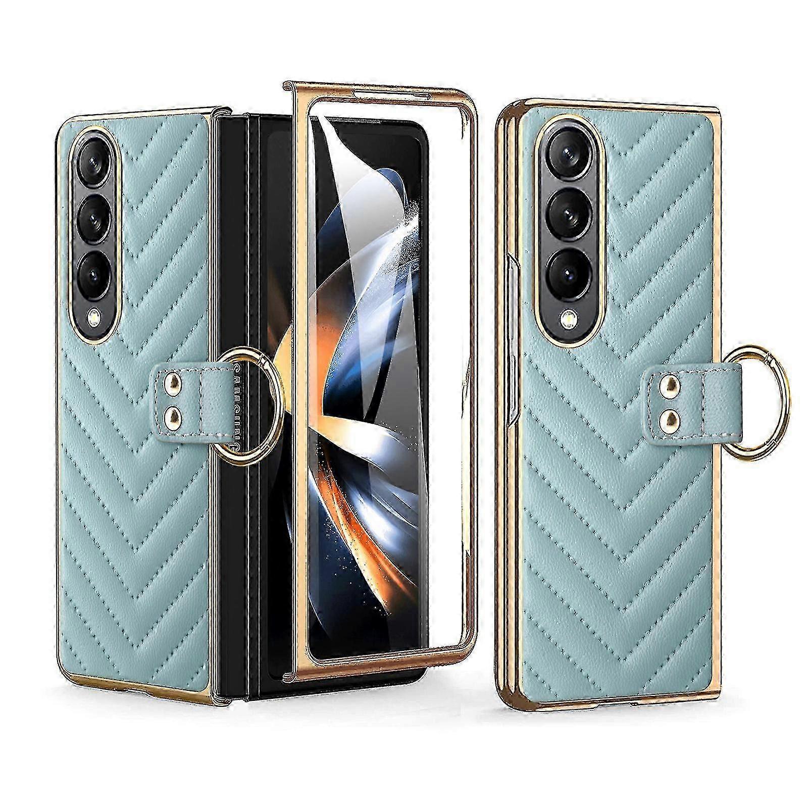 Z Fold 5 Case With Ring Stand & Screen Protector, PU Leather Electroplating All Inclusive Case For Samsung Galaxy Z Fold 5 5g Case