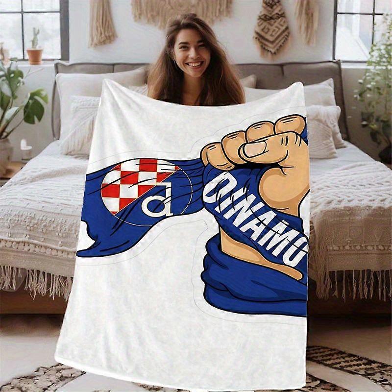 Zagreb Dinamism Club Emblem Fleece Blanket - Lightweight, Soft Flannel Throw with Powerful Symbolism Design, Perfect for-WSDCV424