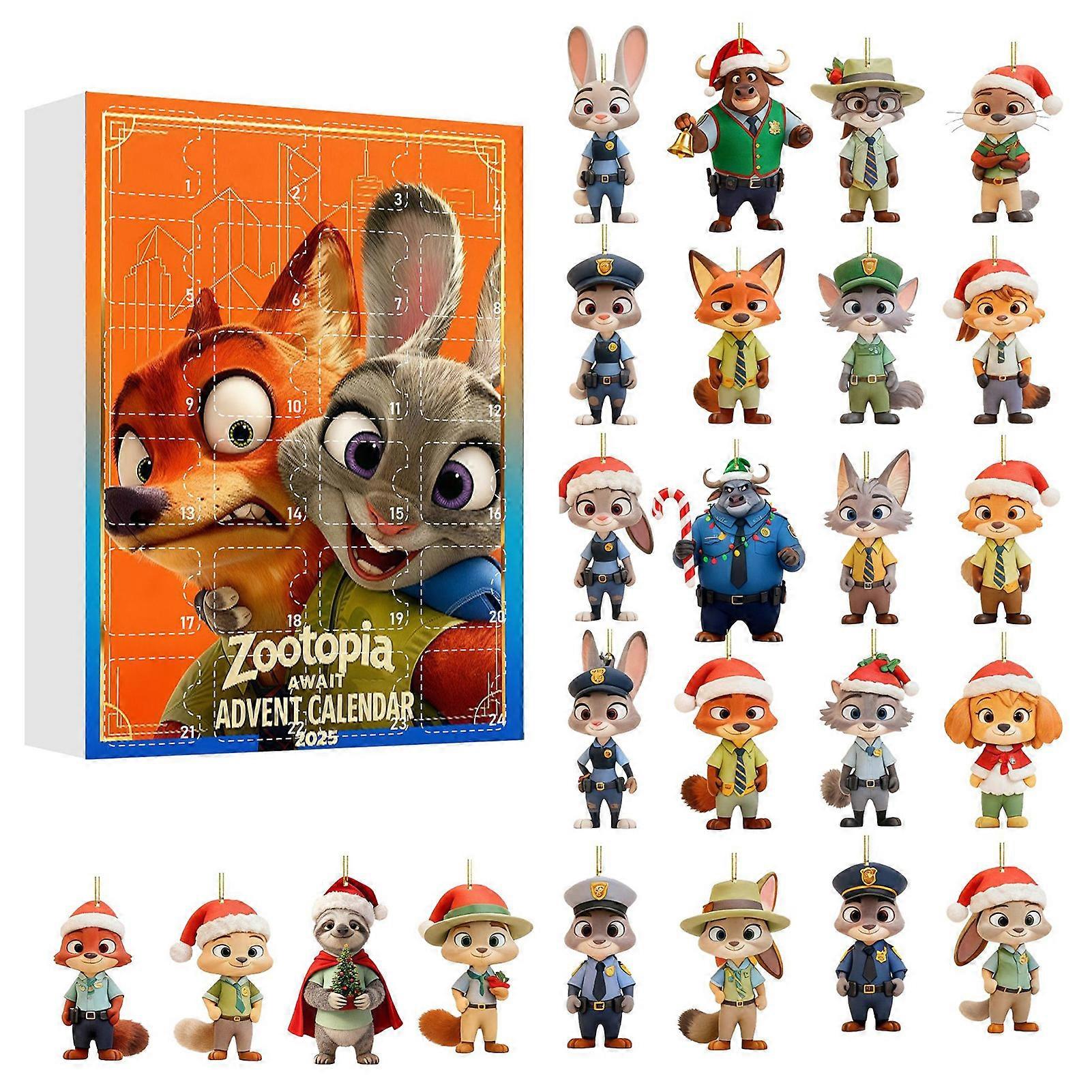 Zootopia-Themed 2D Plane Advent Calendar - Christmas Countdown Box with Acrylic Tree Hanging Ornaments